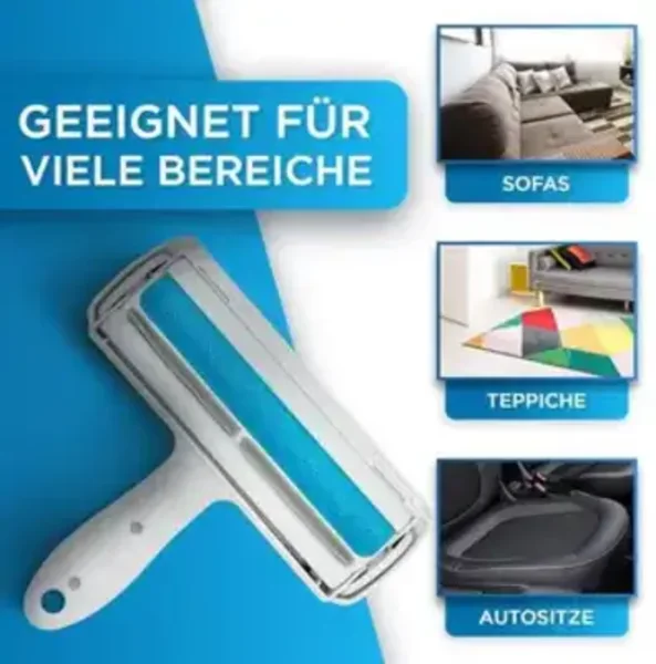 Der Tierhaarentferner FusselZz befreit optimal und schnell Tierhaare von Kleidung, Decken und Sitzen