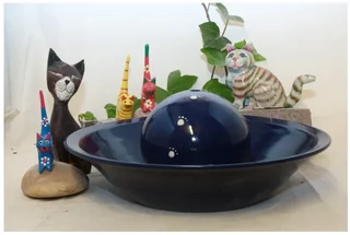 50% RabattZimmerbrunnen groß: Schale (Durchmesser ca. 40cm ) und Kugel (Durchmesser ca. 17cm), Farbe blau mit weißen Tapsen